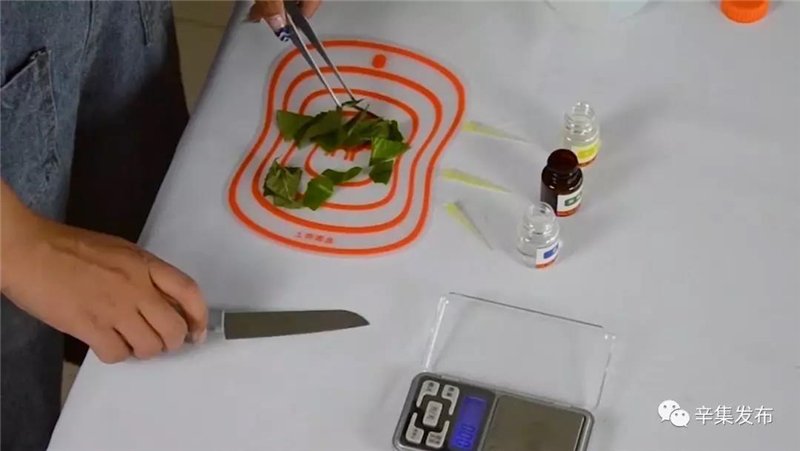 检测历程也十分轻盈:只要称取2.0g样品(约1cm见方)放入样品杯中,,,,加入显色剂,,,,静置10分钟后即可视察到效果。。。。